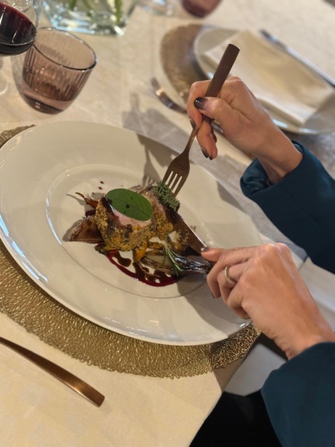 Il ristorante di Arcore propone filetto di maiale in panure alle erbe con carotine baby e scalogno al sale, riduzione di vino rosso