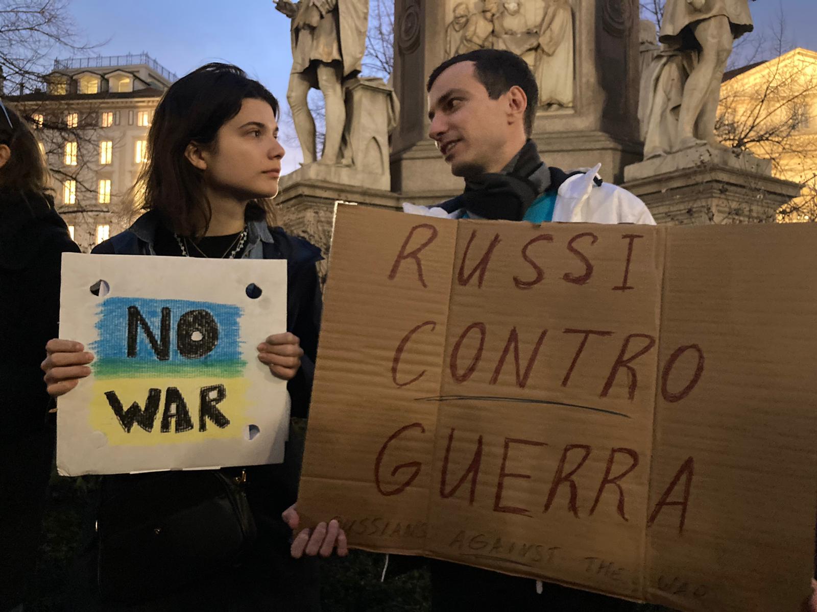 Non mancano anche manifestanti russi, che mostrando solidarietà ai presenti ucraini non perdono l’occasione per ricordare che Russia non equivale a Putin, che loro la guerra non la vogliono, che sono in piazza in Italia per urlare anche da lontano la necessità di mantenere un equilibrio pacifico tra le due nazioni.