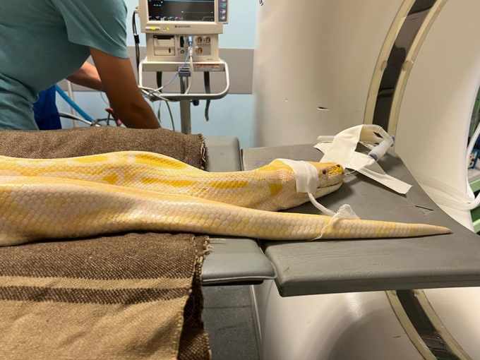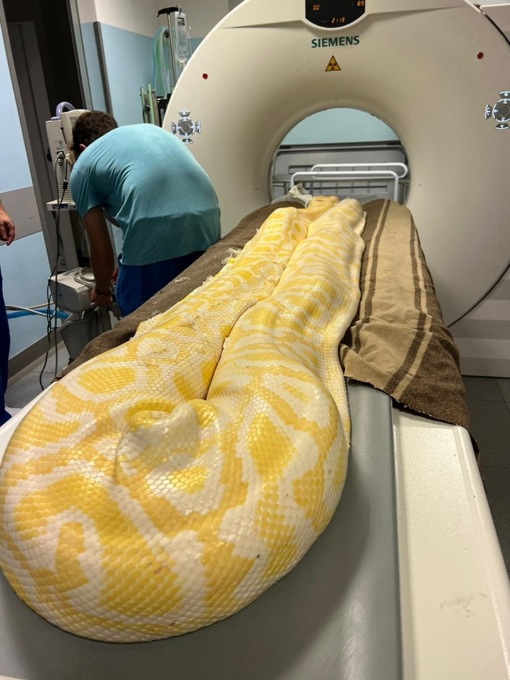 Prima la Tac, poi i controlli e infine l’intervento in sala operatoria per un blocco intestinale che gli impediva di mangiare da nove mesi. La curiosità sta nel fatto che il paziente è… un pitone lungo cinque metri. Pippo, questo il suo nome, è stato operato presso il Canc (Centro animali non convenzionali) di Grugliasco, Torino.