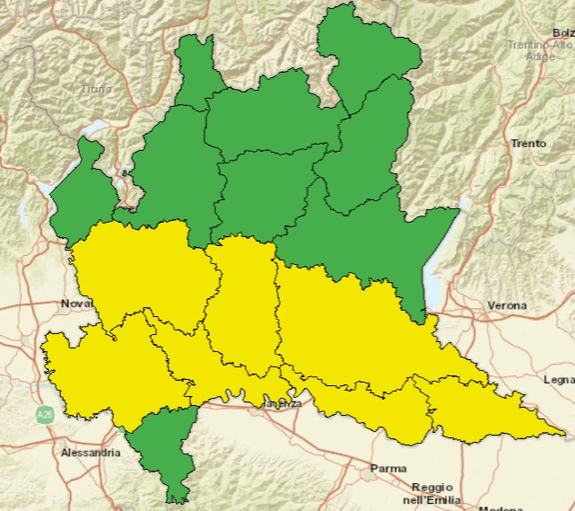 L’allerta gialla per rischio temporali riguarda le seguenti zone: