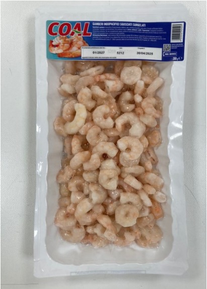 Il prodotto interessato è gamberi sgusciati surgelati Coal, confezionati in vassoi skin da 200 grammi, con le seguenti specifiche:
