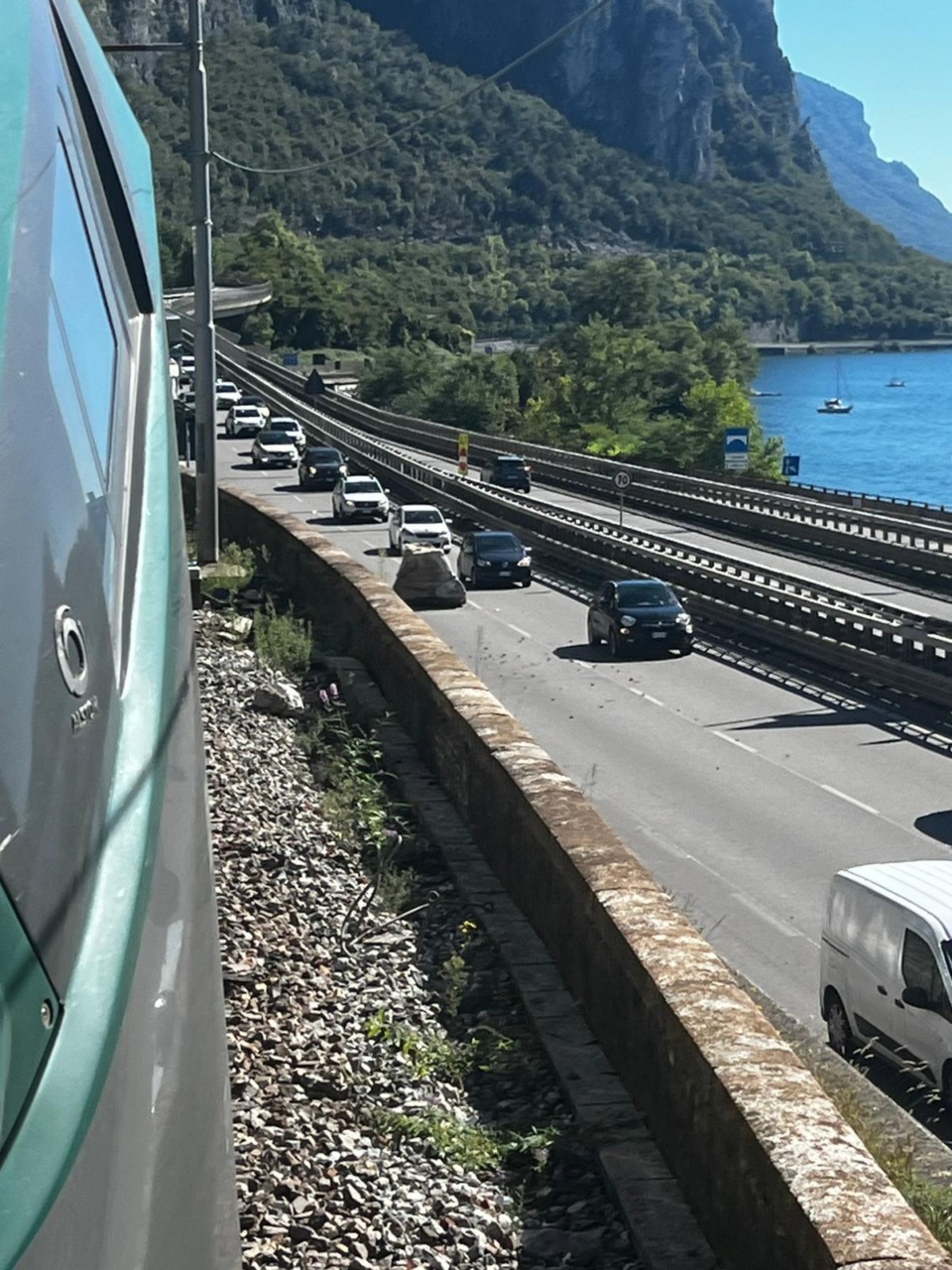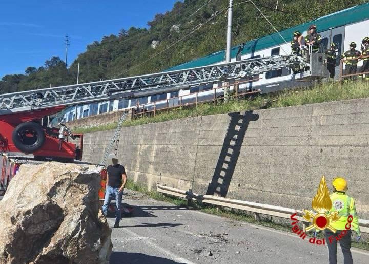 Come racconta Prima Lecco, lo smottamento ha coinvolto anche la linea ferroviaria adiacente, causando il blocco di un treno regionale di Trenord. Dopo le 13 il treno 2824 Milano Centrale – Tirano delle 12.20, mentre procedeva fra Lecco e Abbadia Lariana, ha infatti urtato alcuni massi caduti sui binari.