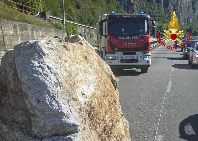 Un’incredibile tragedia sfiorata. Un masso che all’improvviso si stacca dalla montagna, rimbalza sulla linea ferroviaria e “atterra” sulla Statale.