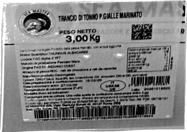 Il secondo richiamo riguarda un lotto di tranci di tonno pinna gialla marinato a marchio Sea Master. Il problema è legato alla presenza di livelli di istamina superiori ai limiti consentiti dalla legge, rilevati durante controlli post vendita.