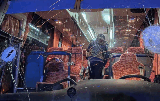 Il vetro dell’autobus colpito