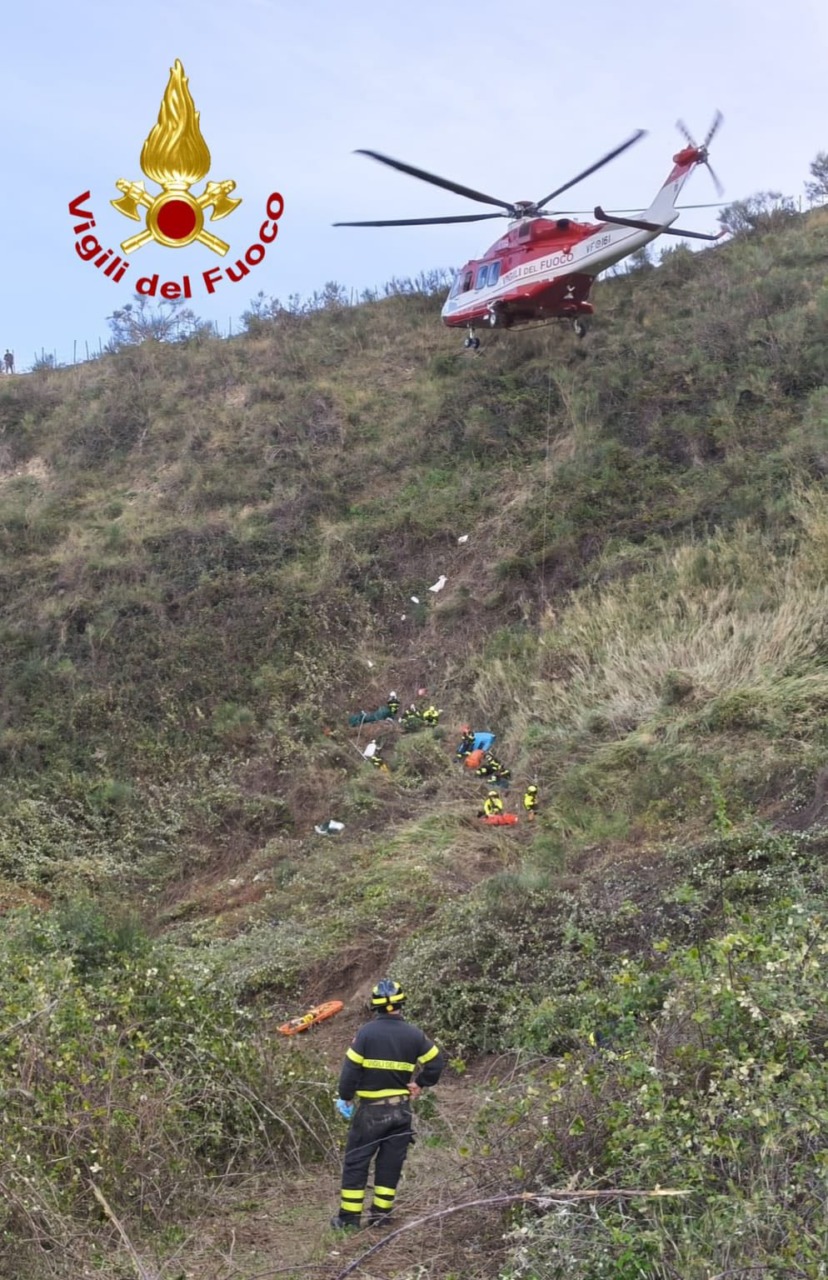 Le vittime sono Francesco Lamazza, agricoltore 78enne del posto, morto sul colpo alla guida del mezzo, e un operaio pakistano, deceduto nella caduta. Un terzo operaio pakistano è stato estratto in condizioni critiche e trasferito in elisoccorso a Catanzaro.