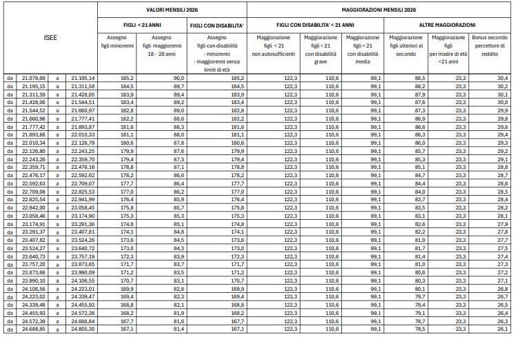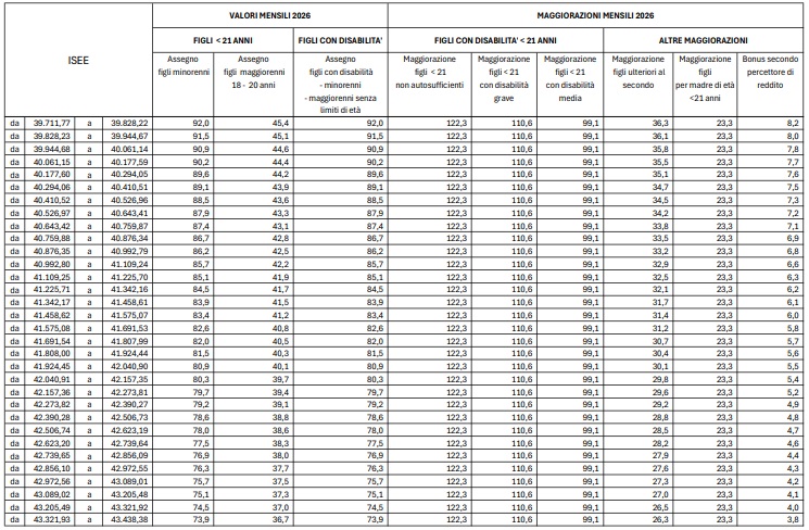 L’adeguamento, pari all’1,4%, è stato applicato per tenere conto dell’inflazione rilevata dall’Istat e comporta non solo un incremento delle somme erogate, ma anche un innalzamento delle soglie ISEE per l’accesso agli scaglioni più favorevoli. Un doppio beneficio quindi per molte famiglie: assegni più alti e maggiori possibilità di rientrare in fasce di reddito migliori.