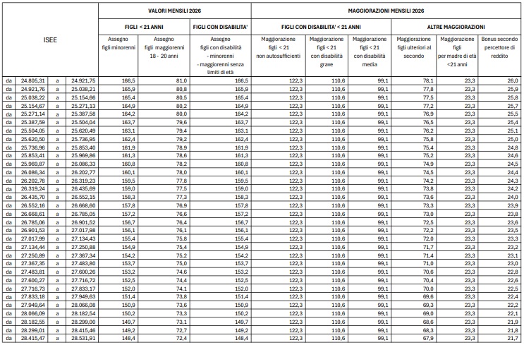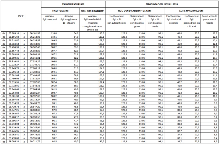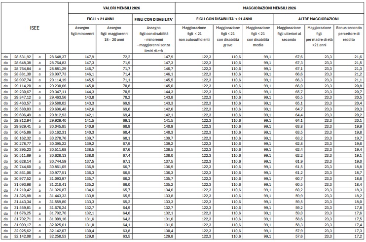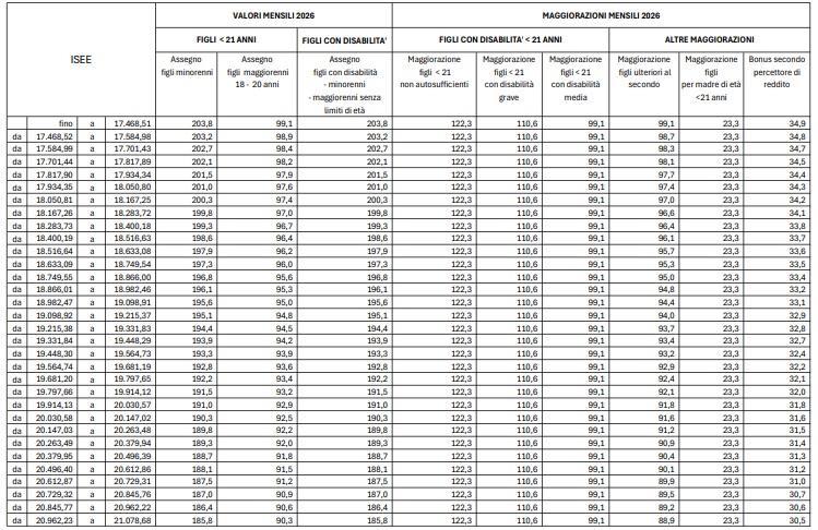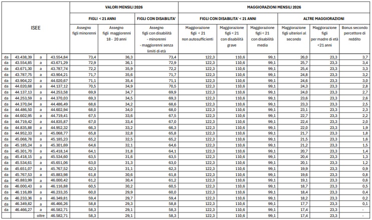 Assegno Unico 2026: i nuovi importi
