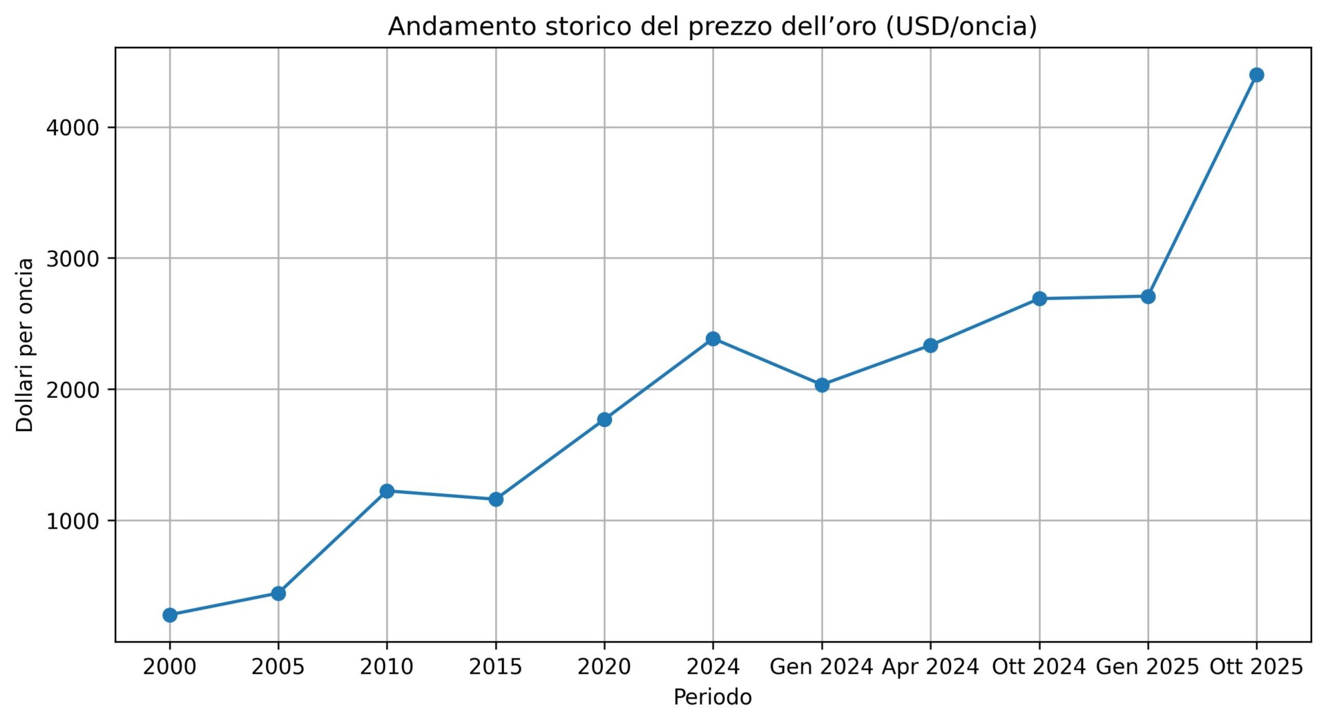 Il 2025 si avvia così a diventare un anno storico per i metalli preziosi. Da gennaio, l’oro ha registrato un balzo di circa il 67%, superando in sequenza le soglie psicologiche dei 3.000 e dei 4.000 dollari l’oncia e mettendo a segno il miglior risultato annuale dal 1979. Un’ascesa sostenuta anche dagli acquisti delle banche centrali e dai forti afflussi nei fondi negoziati in borsa garantiti da lingotti.