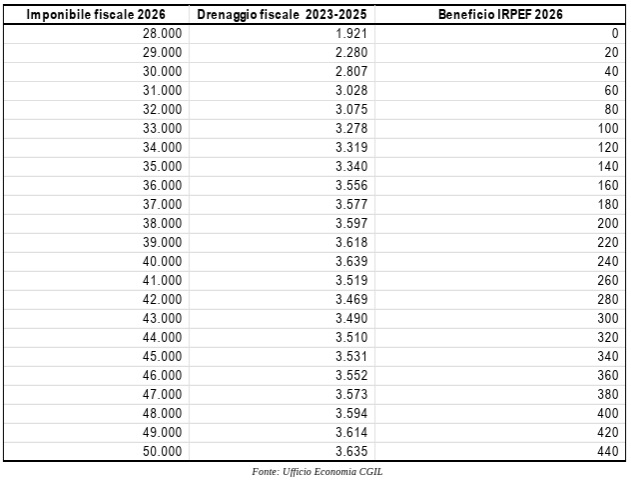 Nell’immagine seguente la tabella elaborata dalla Cgil con le simulazioni in base al reddito.
