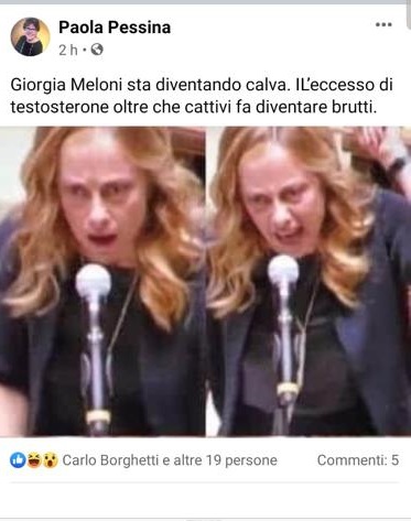 “Giorgia Meloni sta diventando calva. L’eccesso di testosterone oltre che cattivi fa diventare brutti”.