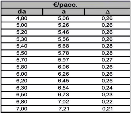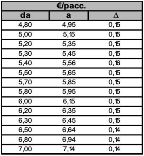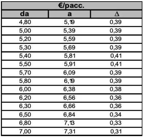L’effetto combinato porterà i pacchetti più diffusi a collocarsi, entro tre anni, tra 5,70 e 5,90 euro.