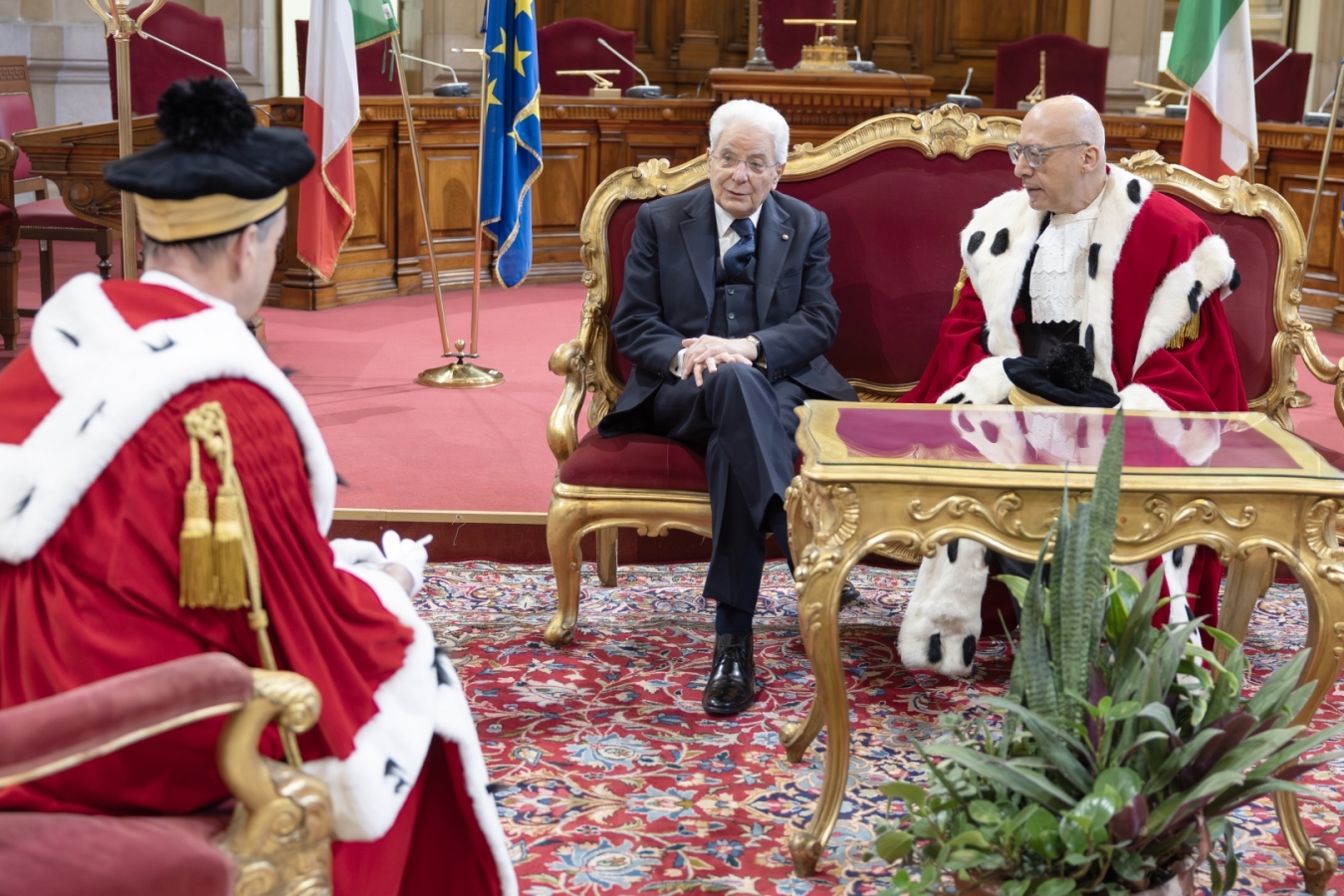 Accanto al Capo dello Stato erano presenti le più alte cariche della Repubblica: Ignazio La Russa, Presidente del Senato, Lorenzo Fontana, Presidente della Camera dei deputati, e Giovanni Amoroso, Presidente della Corte costituzionale, a sottolineare il carattere unitario e trasversale dell’appuntamento.