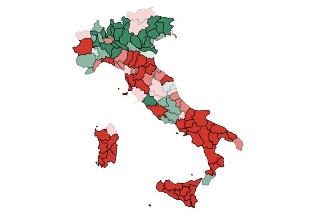 Anche nelle regioni dove il No è dominante, ci sono eccezioni locali: Ferrara in Emilia-Romagna, Imperia in Liguria o Reggio Calabria al Sud votano per il Sì. Ma sono casi isolati che non cambiano il quadro generale.