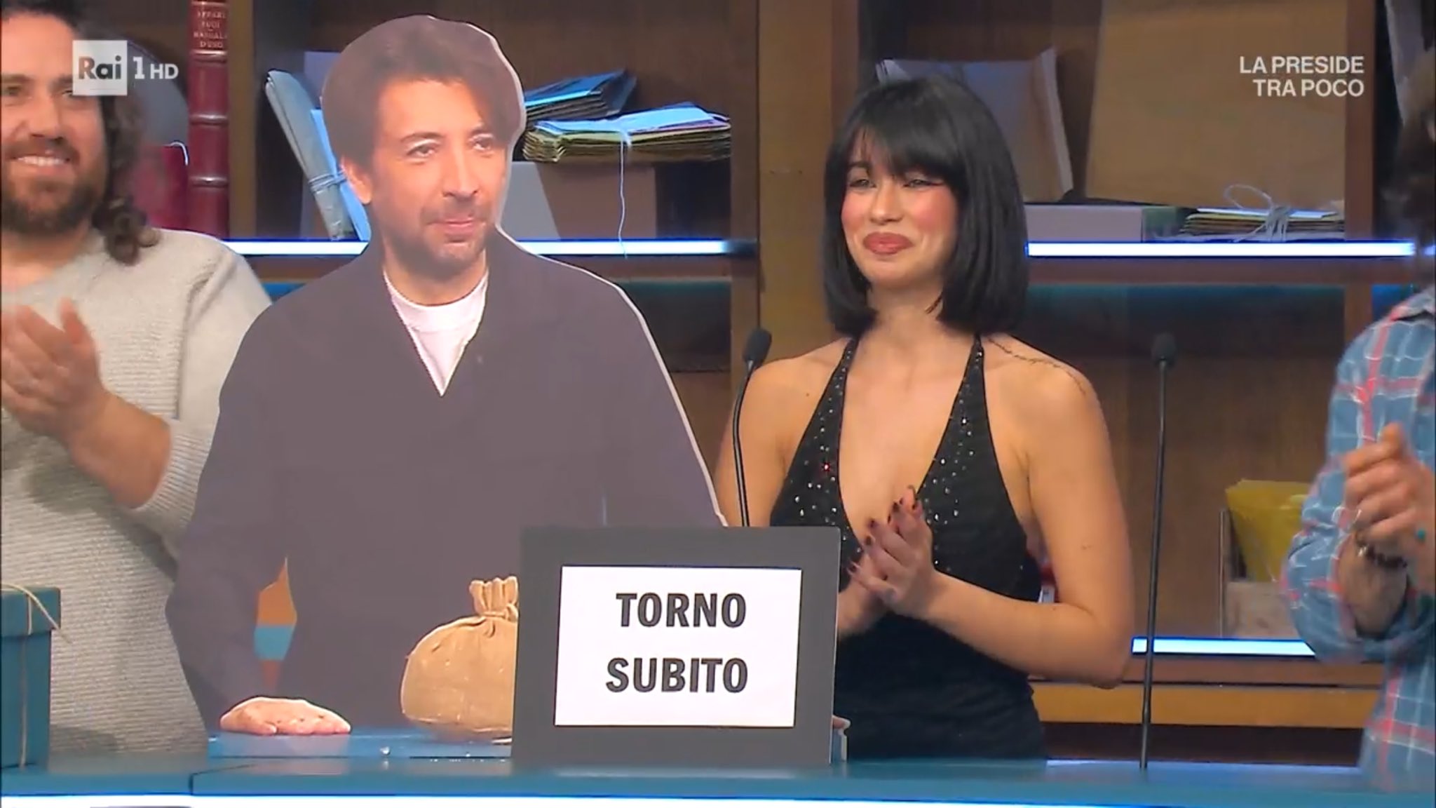 La produzione ha scelto la strada dell’ironia: al posto del comico è comparso in studio un cartonato con la sua immagine e la scritta “Torno subito”, una trovata che ha divertito ma che ha anche alimentato ulteriormente le domande dei fan.