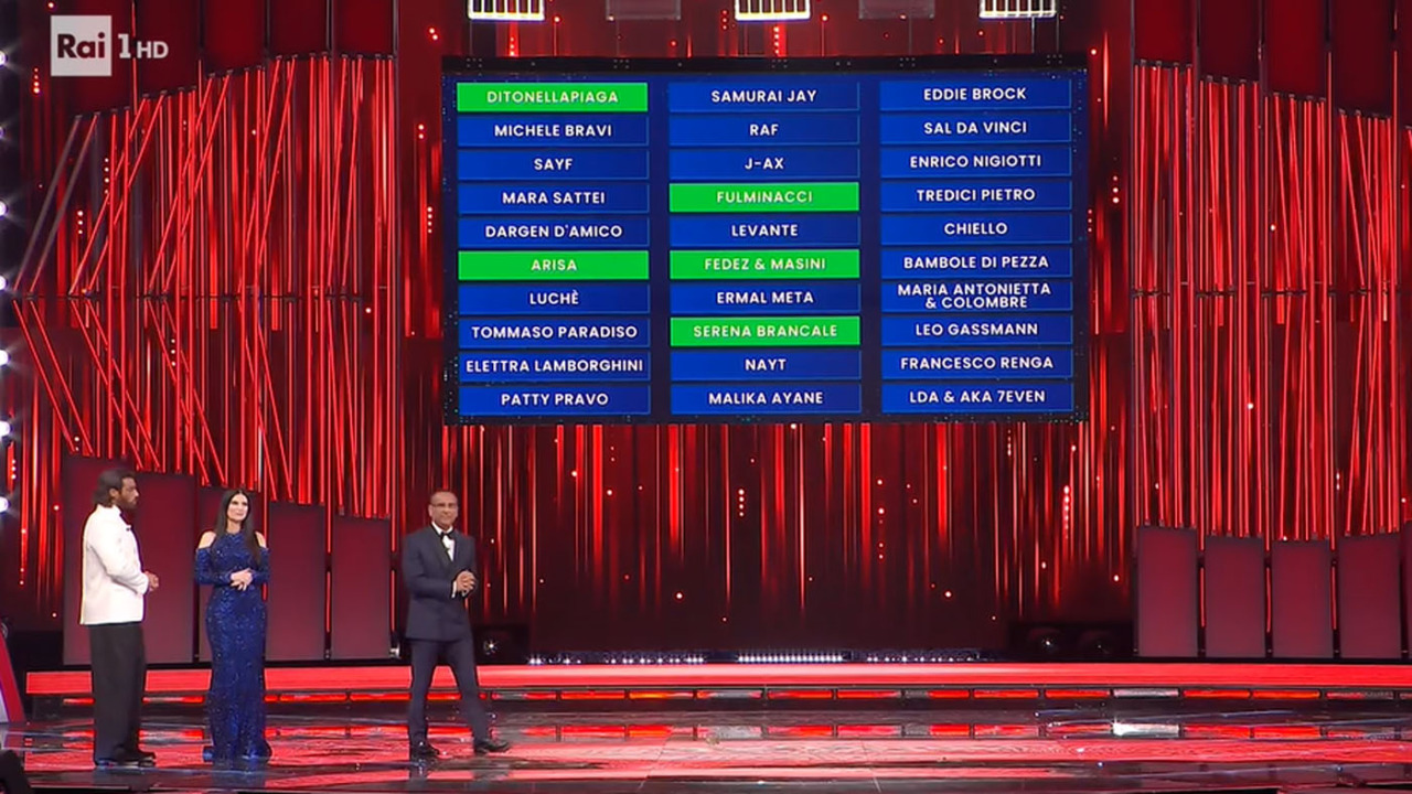 Sul palco tutti i cantanti, ospite speciale Tiziano Ferro. Co-conduttori Laura Pausini e Can Yaman