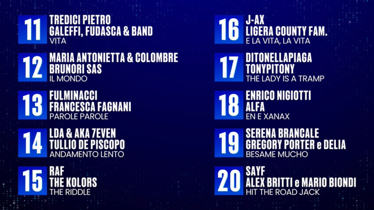 L’ORDINE D’USCITA UFFICIALE reso noto dall’Ufficio Stampa Rai