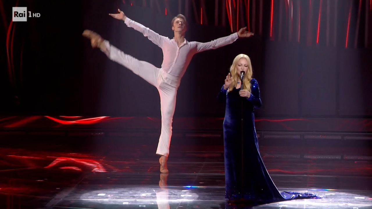 Dall’esterno dell’Ariston al palco. Ha cantato i suoi successi “Ritorno ad amare”, “Immensamente” e “Io canto”.